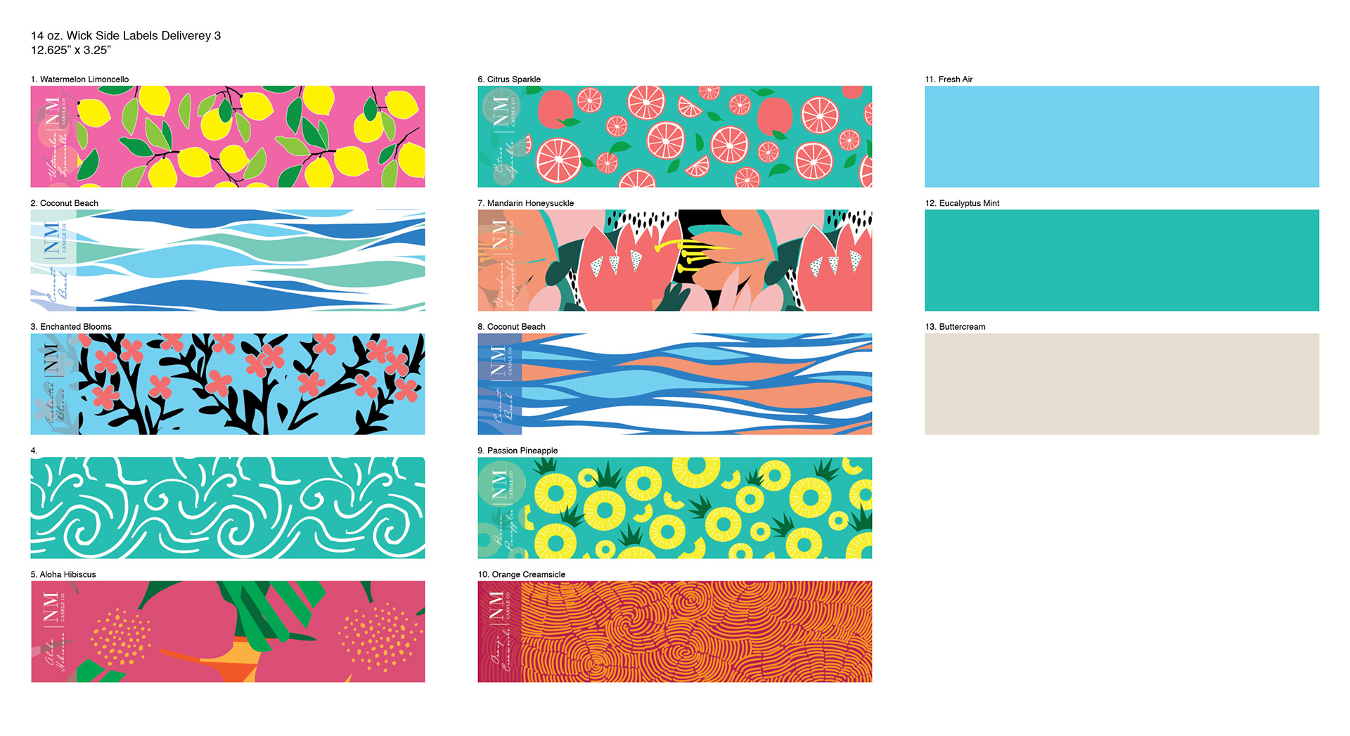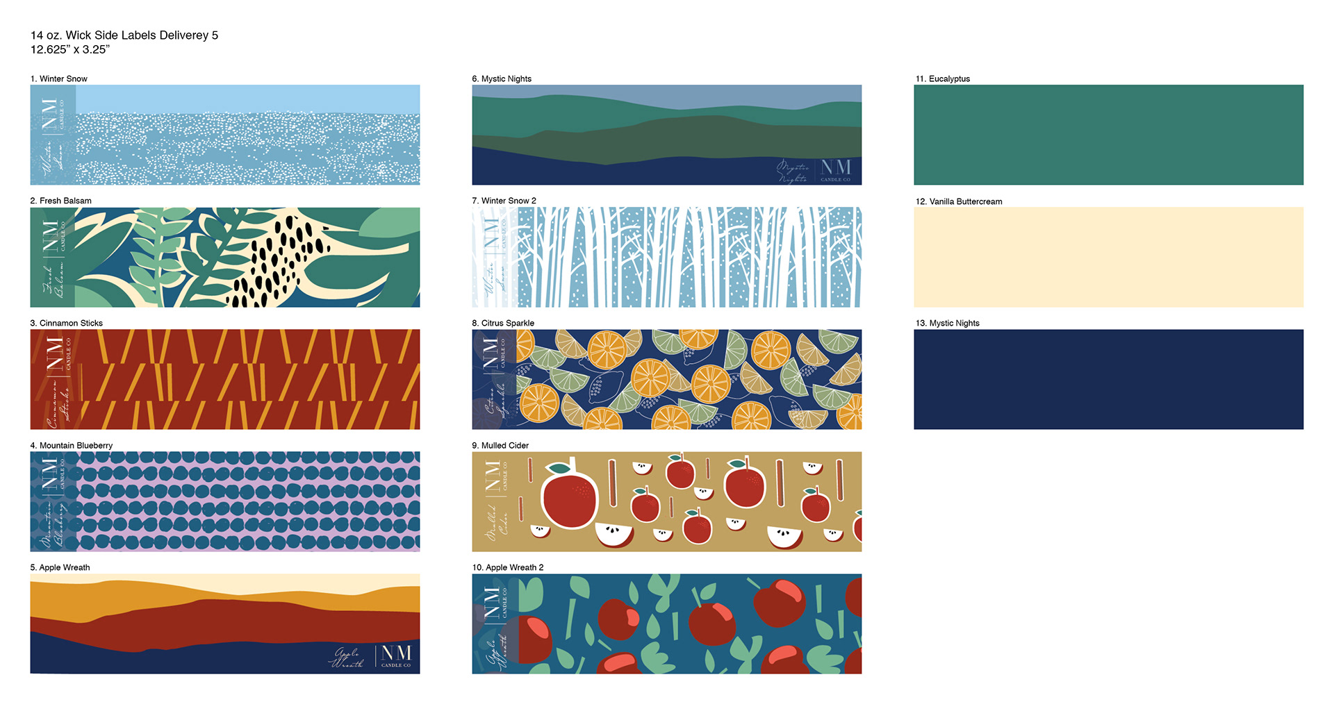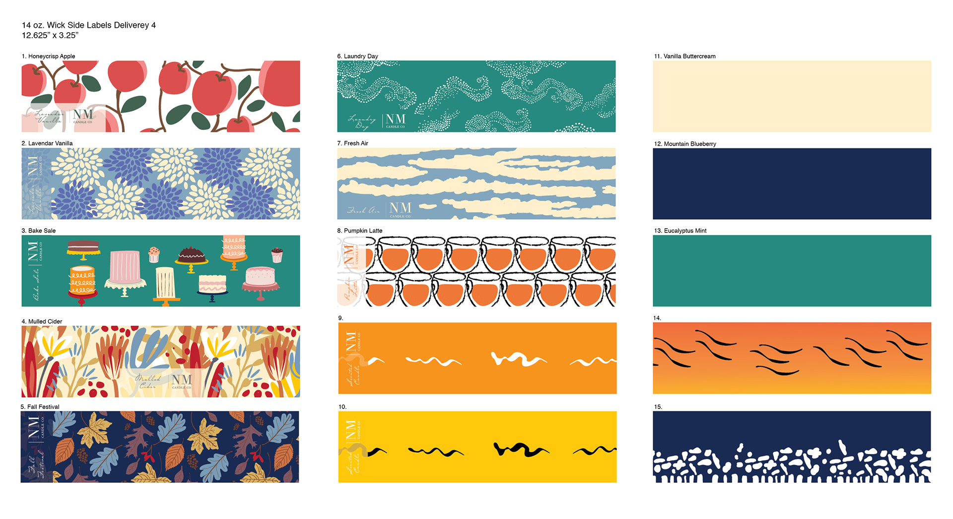 The assignment was to create 30 original designs for a new line of candles representing three seasons... summer, winter and fall.